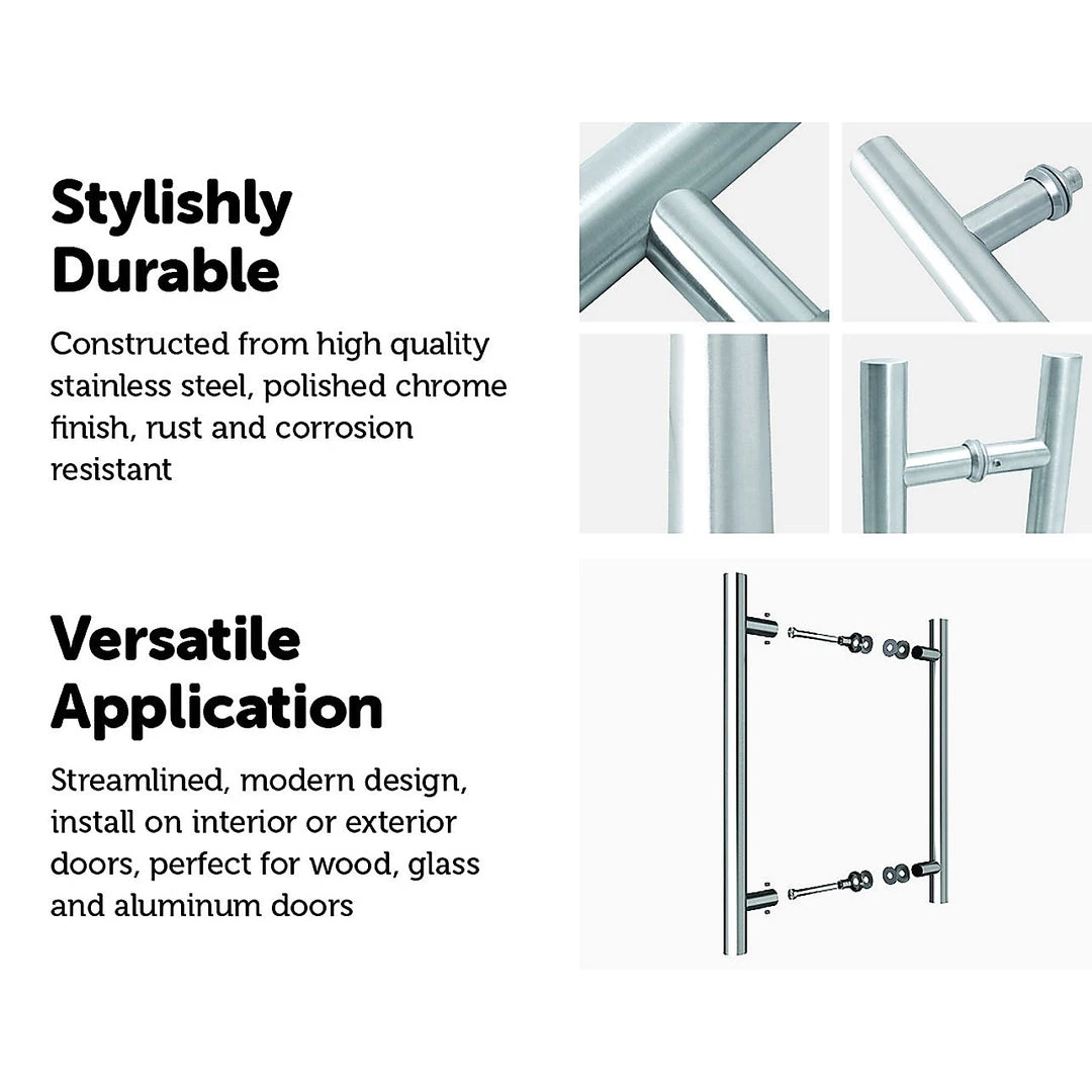 This door pull/handle designs guarantee to bring out the elegance of your home. Perfect as door pull entrance/entry handle, push pull door handle bar, bathroom glass door pulls, shower door handle, sliding barn door pull handle, on interior or exterior front door, shops, kitchen door, gate, wine cellar, shed/garage from small to big, large sizes. Mountable on wood door, glass door, fiberglass door, metal door, etc
