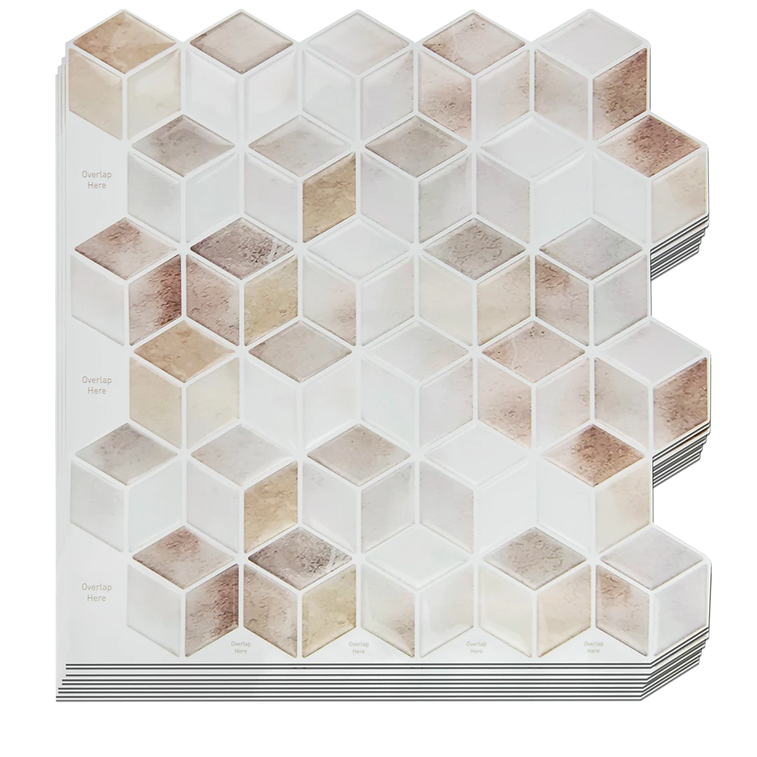 Want the look of expensive Shell Mosaic tile but don’t want the hassle of installing it? With these ceramic-look moulded plastic tiles from Randy & Travis Machinery, you’ll have the best of both worlds. These peel-and-stick tiles are easy to install, but their three-dimensional look replicates the look and feel of ceramic tile. They’re perfect for an accent wall, backsplashes for kitchens or bathroom sinks, on your kitchen island – or even for your caravan.