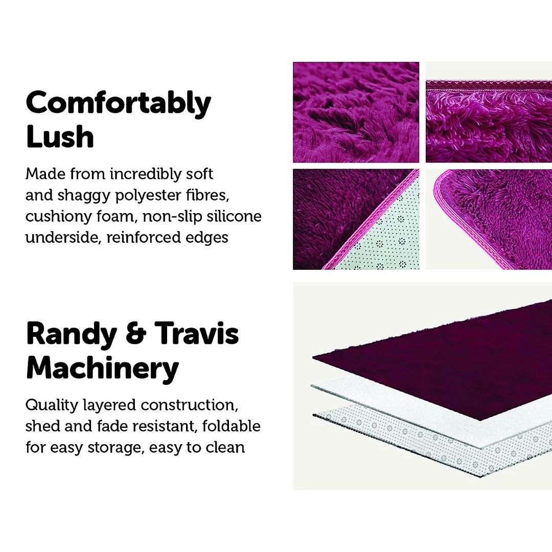 There’s nothing like a plush shag rug to set a casual mood in a room. This gorgeous rug by Randy & Travis Machinery is no exception. Its soft, cushiony surface practically invites you to take off your shoes and pamper your feet on its deep, shaggy pile. Curl your toes into its softness – it’s like a spa for your feet. And best of all – it stays put, thanks to its non-slip underside.