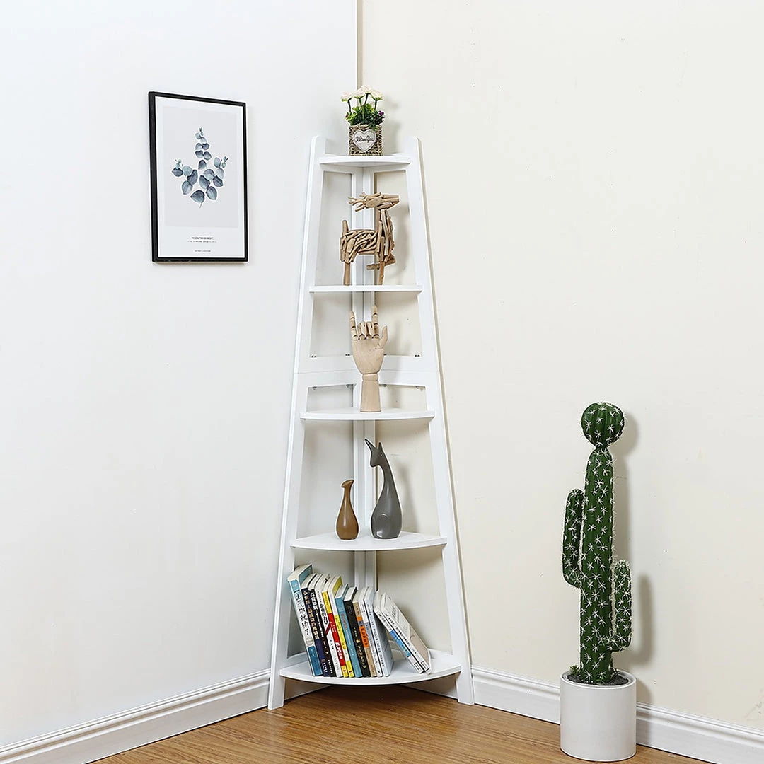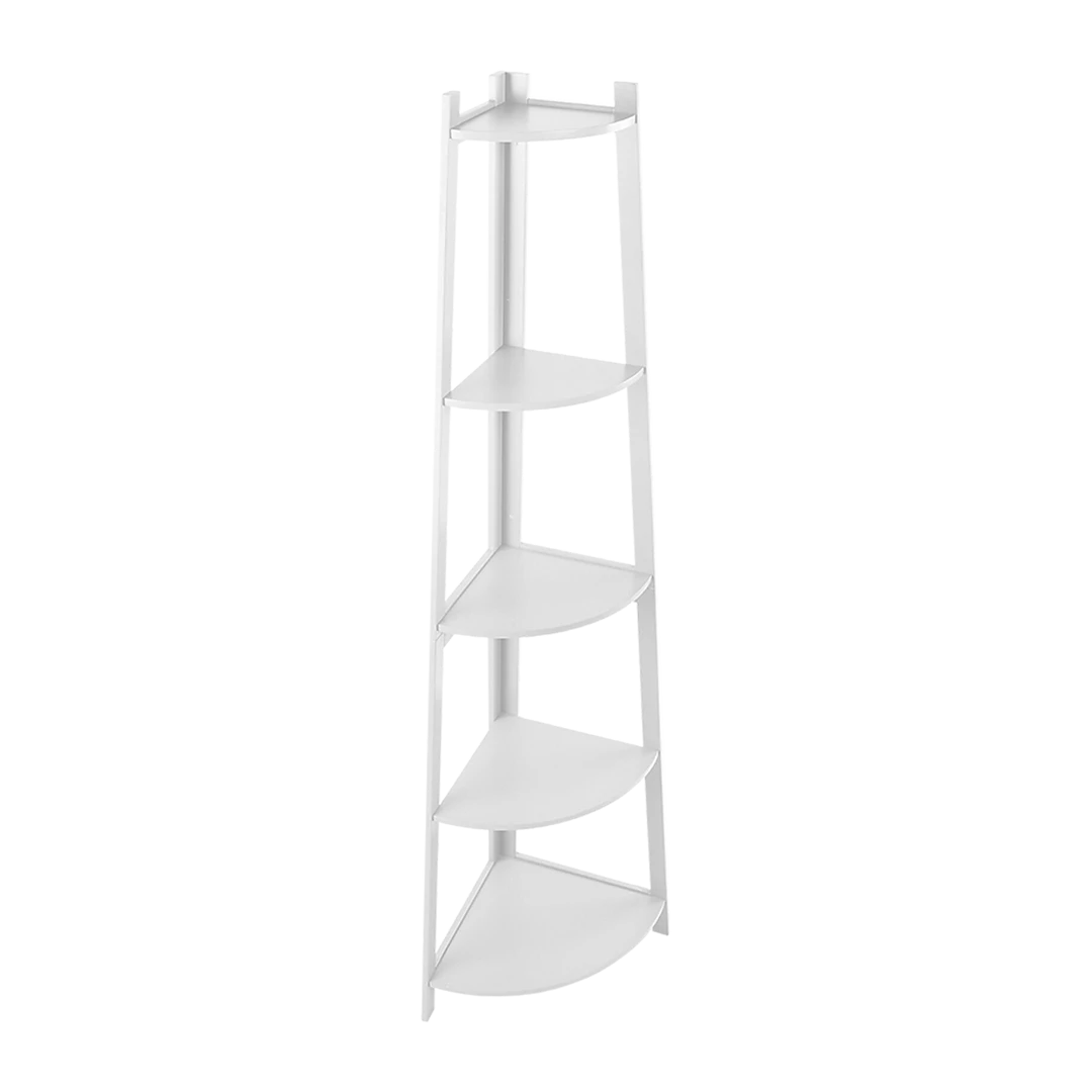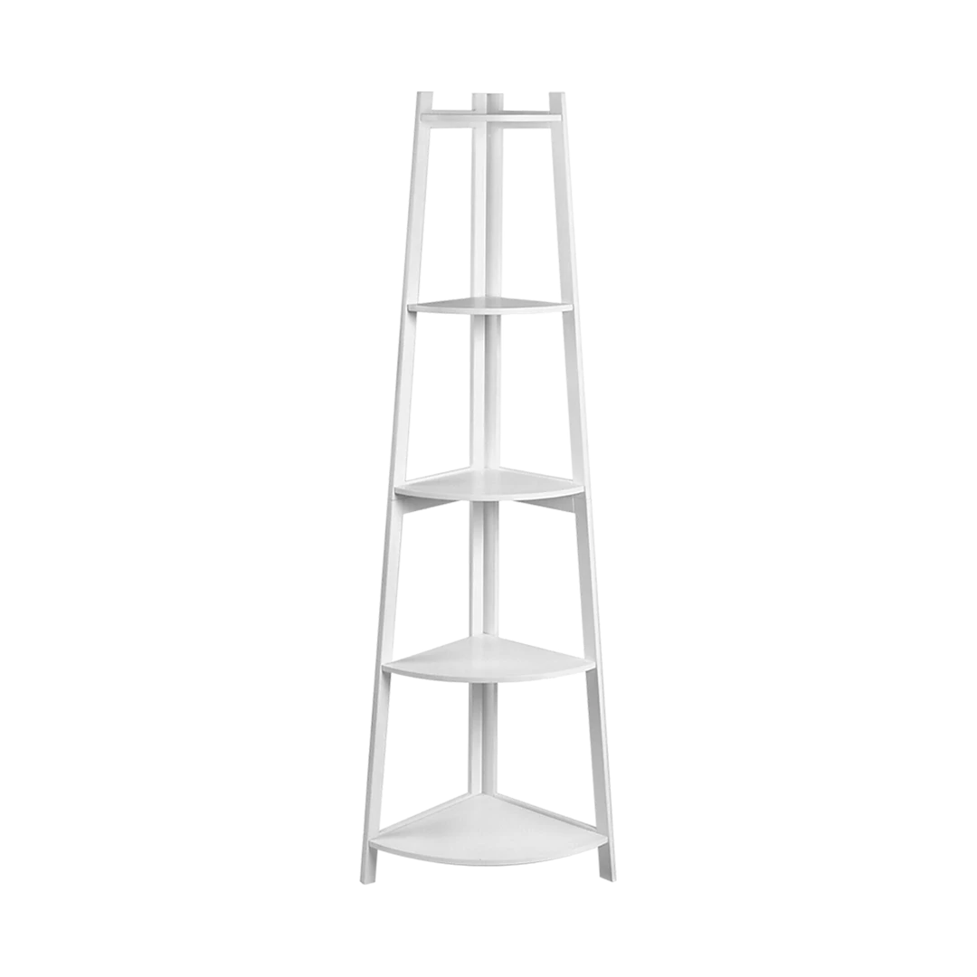 If you love the no-fuss lines of modern design, this corner shelf by Randy & Travis Machinery is a must-have. Done in neutral white, it will turn a forgotten corner into a stunning focal point, showcasing your books, collectables, and plants in a neat, orderly display. Its lopped-off triangular design tapers to the top, contrasting with the curves of the semi-circular shelves.
