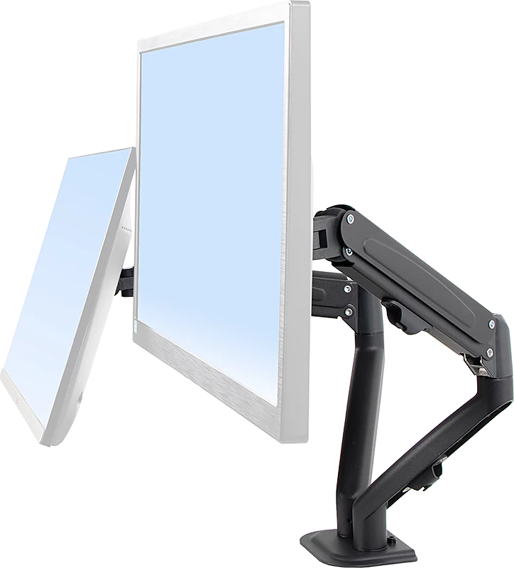Simply install it on the edge of your worktable or desk — or use a grommet to install it anywhere on your desk. It rotates 360 degrees and swivels horizontally 180 degrees to ensure the ideal viewing perspective for you and your colleagues as you collaborate. Its strong yet lightweight aluminium construction supports even the heaviest screens — up to nine kilogrammes per arm. Its powder-coated finish ensures durability, even with heavy everyday use. Its integrated cable management system keeps cables from ending up in a tangle, so your desk will have a neat, professional appearance. It fits screens from 43.18 to 68.58 cm, accommodating a wide range of devices.