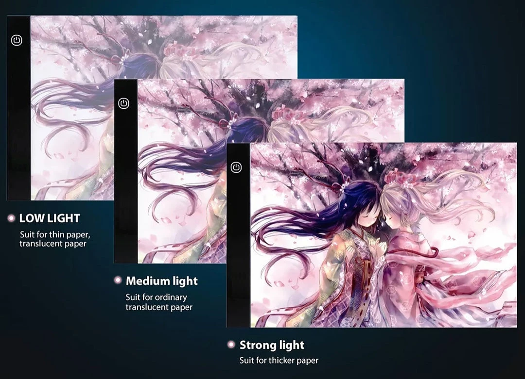 It’s the perfect solution to transfer an existing design to fabric or other craft projects, or to duplicate a design for custom tattoos. Its LED backlight can illuminate through even thick paper. Stepless dimming allows you to adjust the brightness to the level you need. Flash film evens the light source to protect your eyesight. This tracing board makes the ideal gift for the artist in your life, as well as a source of inspiration for your own artistic side. Order yours today!