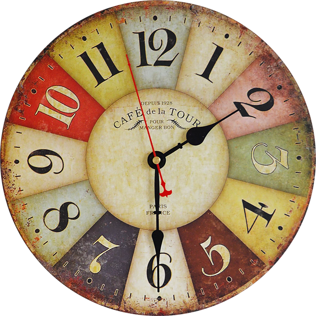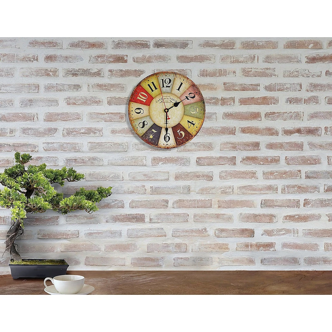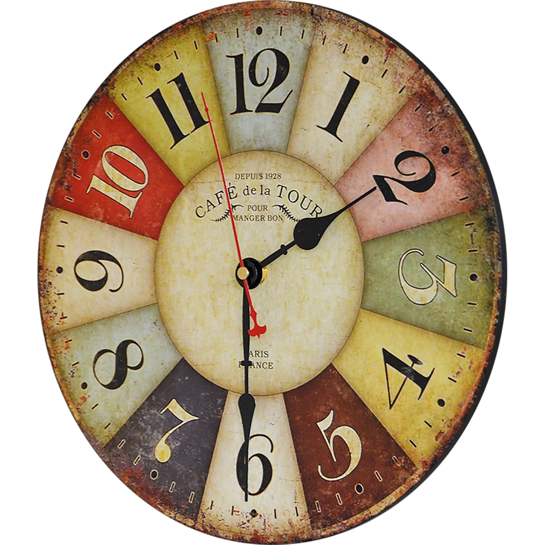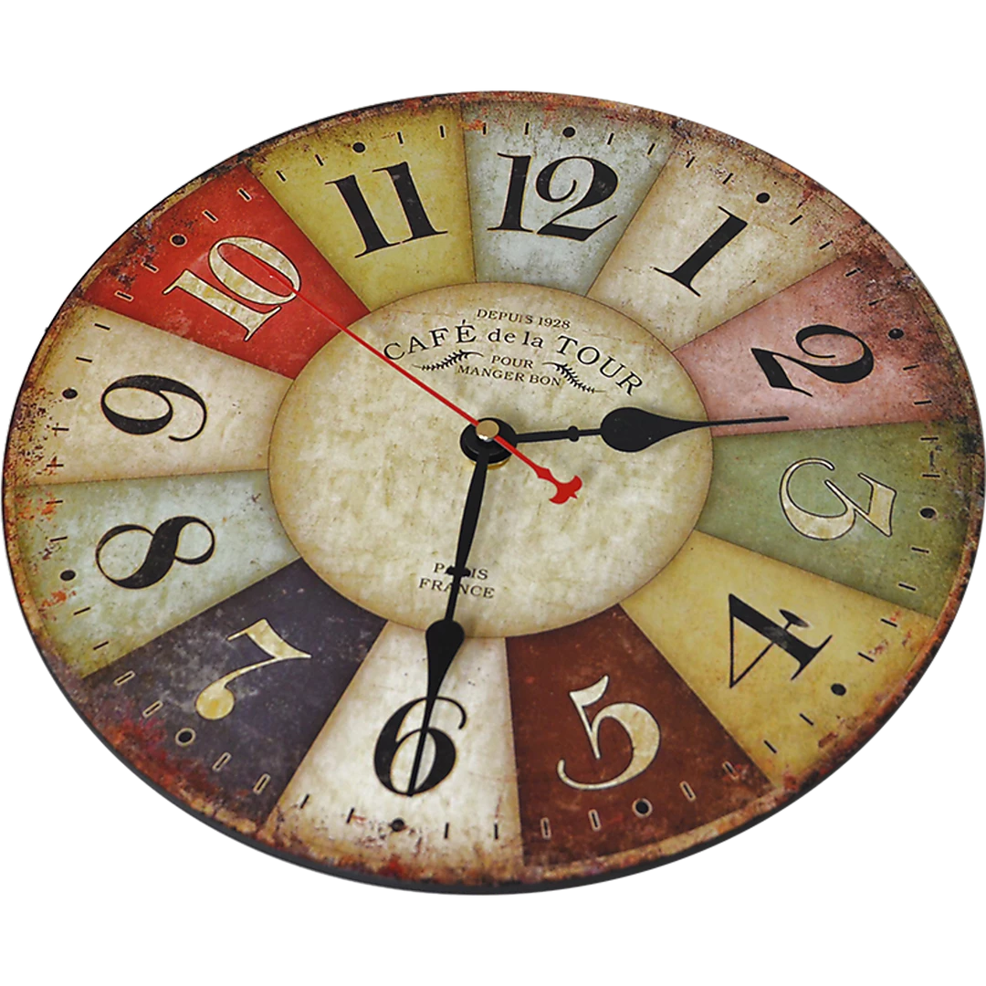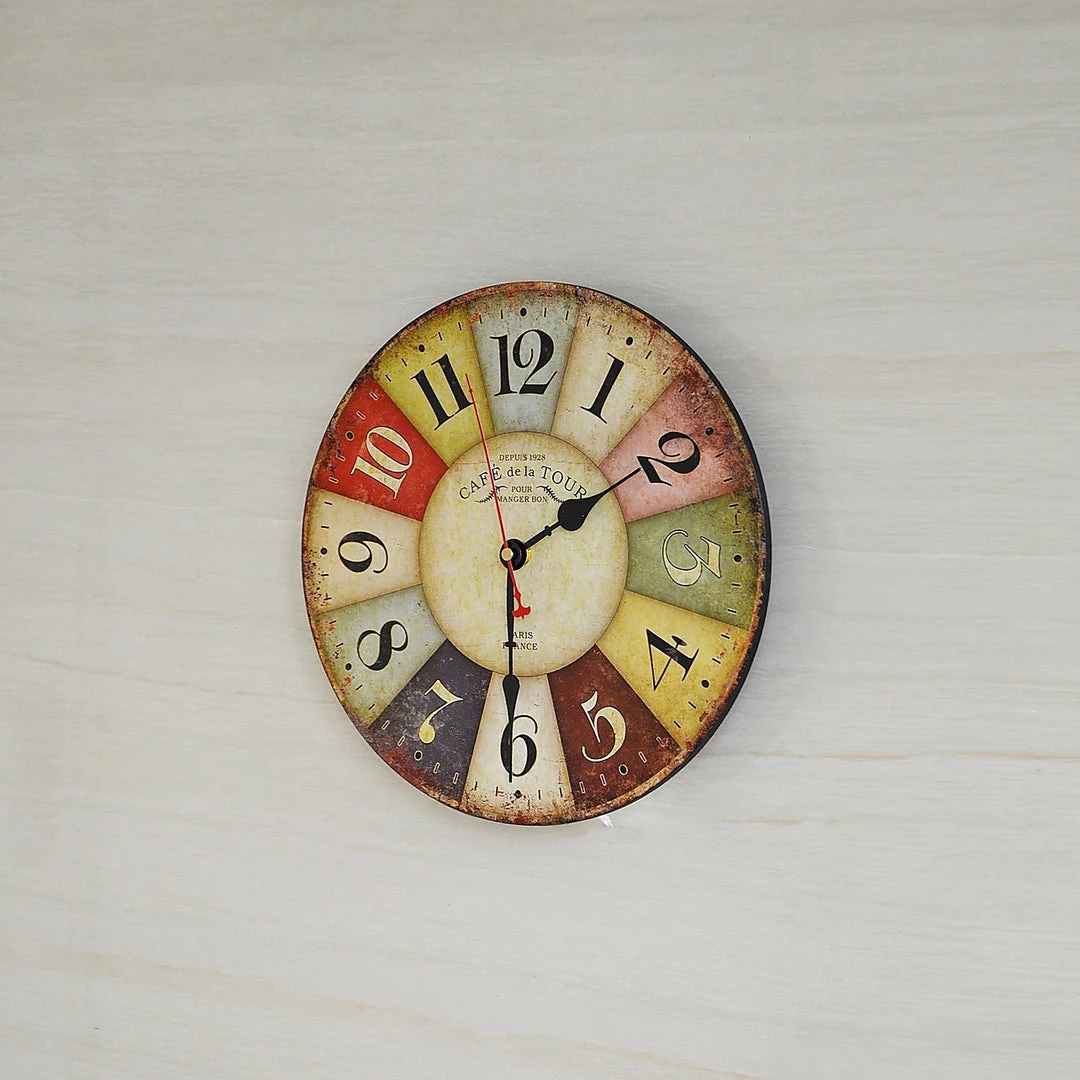 For a colourful addition to your kitchen, café, or casual restaurant, this rustic French café-inspired wall clock by Randy & Travis Machinery is the perfect choice. With a rainbow of muted colours, it adds a pop of colour to accent your room’s best features, while blending in with almost any colour palette.