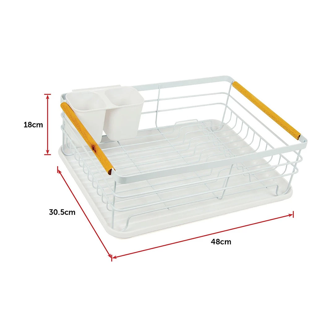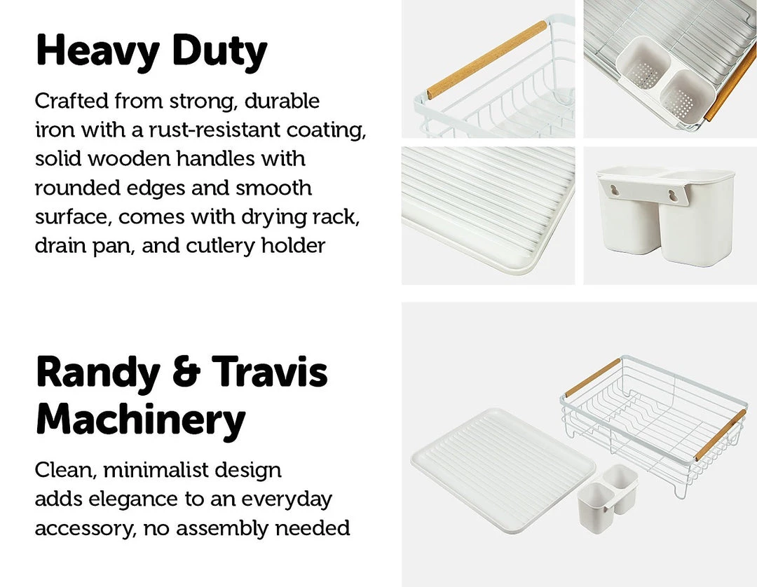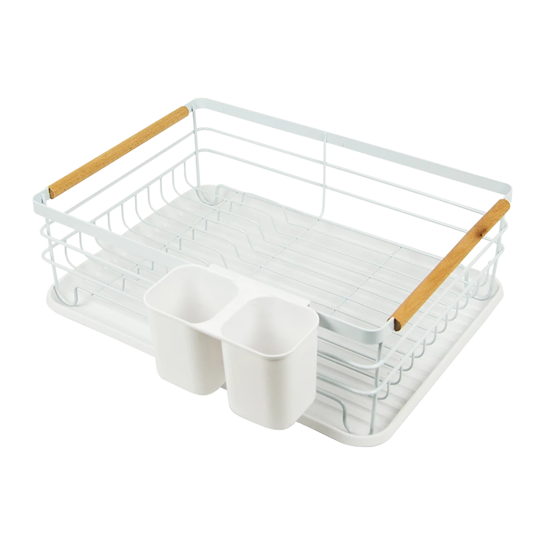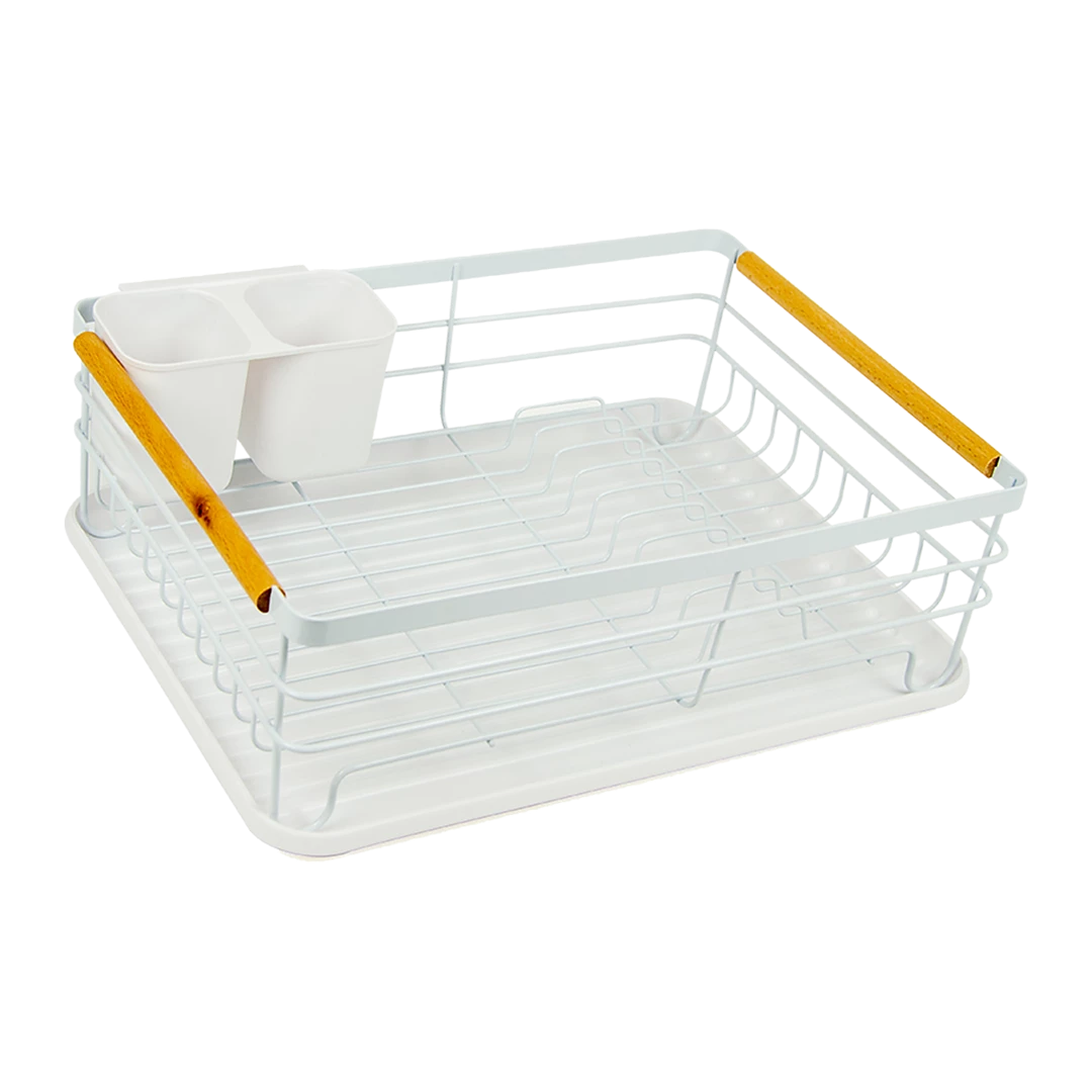 Crafted from strong, durable iron with a rust-resistant coating, it can handle even your heaviest pots and pans. Its thick protective coating is designed to keep rust at bay for years to come, even under frequent use. Its deep-channelled resin drip tray protects your countertop from drips as your dishes dry. And, it comes ready to use right out of the box with no assembly needed. Simply place the cutlery holder where you want it and start drying your dishes in style. Give your kitchen a quick update with this drying rack. Order yours today!