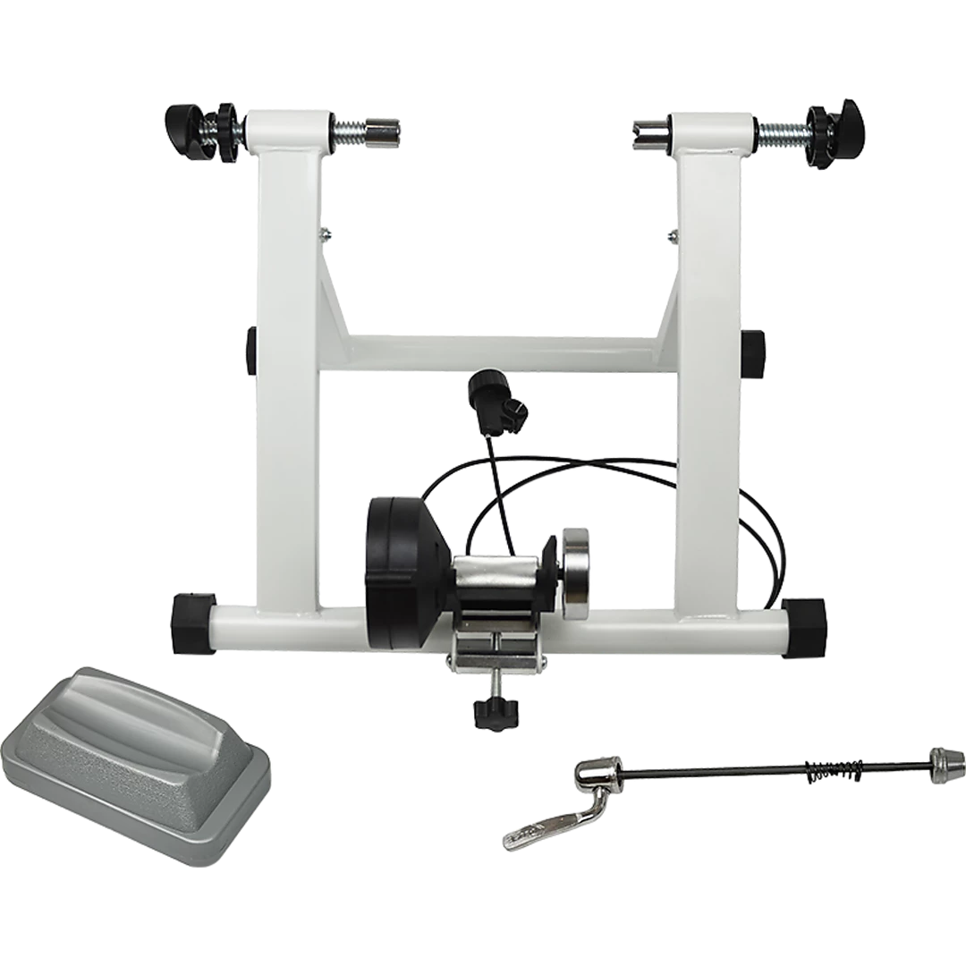 Specifically engineered for indoor fitness and endurance training, the training cycle includes seven magnetic resistance levels and simulates a variety of terrains. No matter what your specific training goal, cycling enthusiasts and cross-training athletes alike will get the work out they need. Your package includes skewer and wheel riser block. The universal seven-position fitment adjustment control mounts to the handlebars of your bike allowing for easy access.