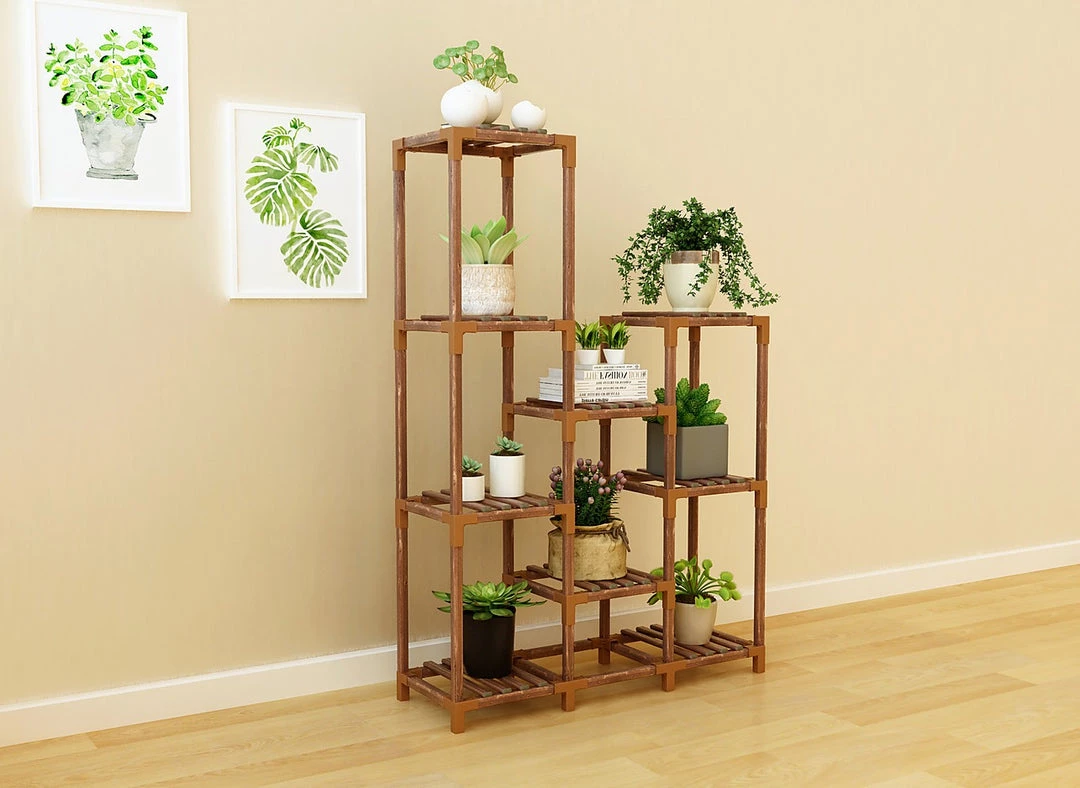 If you love plants, an attractive plant stand is a must to showcase their natural beauty. With this lovely wood plant stand by Randy & Travis Machinery, you can display plants, works of art, or other collectibles in a natural setting that will complement any interior with its neutral, minimalist profile. Its airy design allows all the sunshine your plants need to pour in, while providing plenty of space between the shelves for your plants to grow.