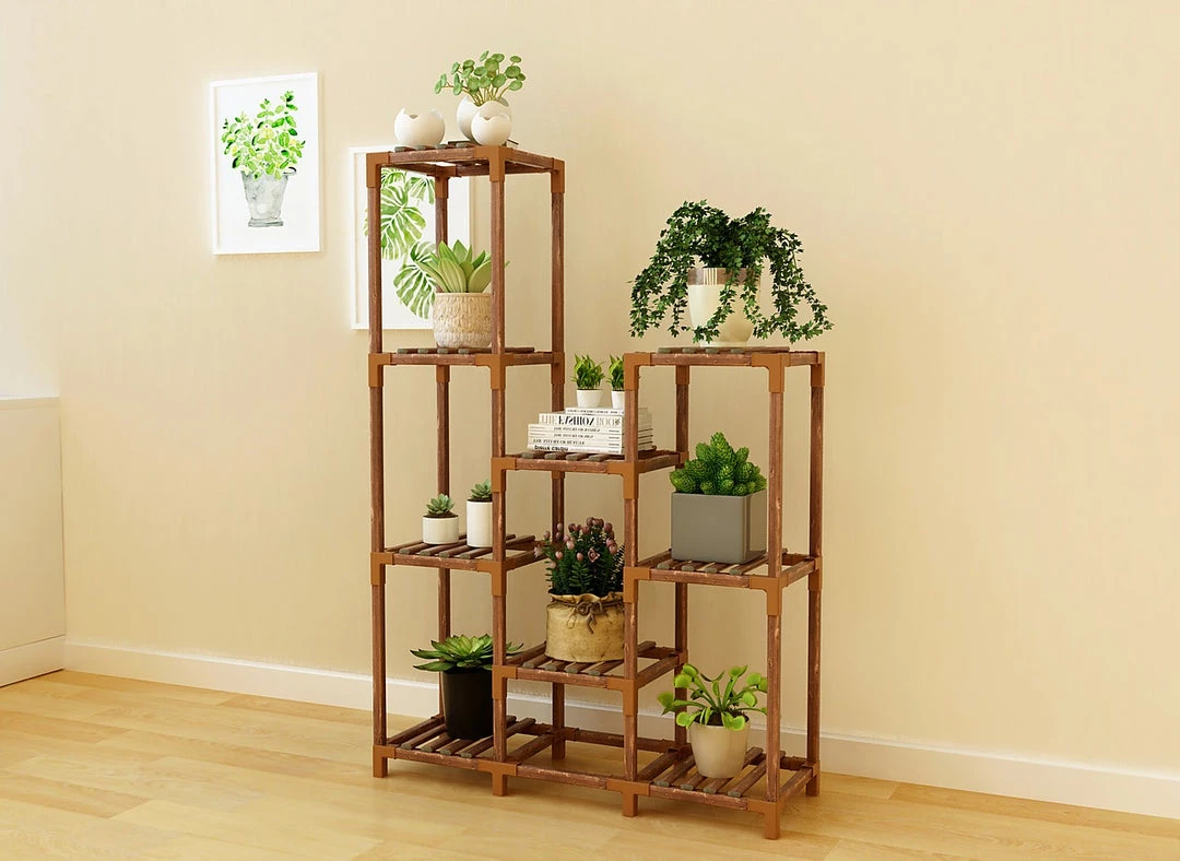 The stained surface resists moisture, making it suitable for use outdoors on your patio or garden. The slats in the shelves allow water to drain out, avoiding overwatering issues. With generous space between the slats, air can circulate around your plants, helping them resist mould and get all the life-giving carbon dioxide they need to thrive from the air. It’s the perfect gift for the plant lovers in your life – and makes a gorgeous focal point in your home or on your patio. Order yours today!