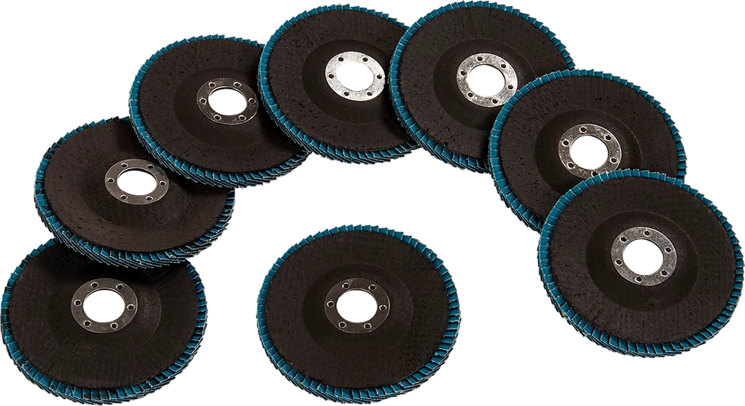 Get a finer finish with the increased precision flap discs can provide, even on uneven surfaces. Enjoy less fatigue due to vibration, as well as cooler operation, with fewer heat marks and a higher degree of safety than regular grinding wheels. Don’t wait to give your work that finishing touch. Buy your set today!