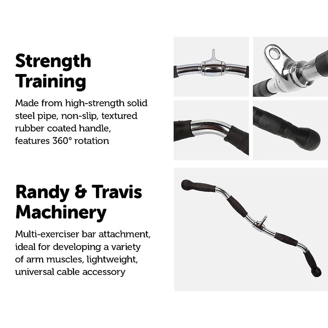 Made by Randy & Travis, this revolving curl row bar features heavy duty steel construction, built to last, and designed for optimum results. Paired with comfort and ease of use, this attachment is sure to find its way into your daily fitness routine.