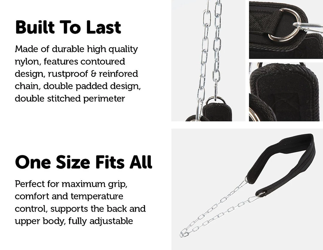 Manufactured with top of the line materials and double stitched at the perimeter, this light weight yet durable Dipping Belt will last you for years to come, and is sure to stick with you as you gain muscle mass, fitting like it did the day you bought it!