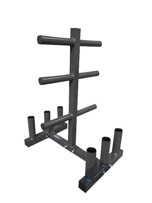 The rack accommodates Olympic-sized 51mm weight plates and 50mm Olympic bars. There is room for multiple plates on each of six weight plate spokes. Even better, six additional outside spokes give you a convenient place to store standard-sized gym bars.