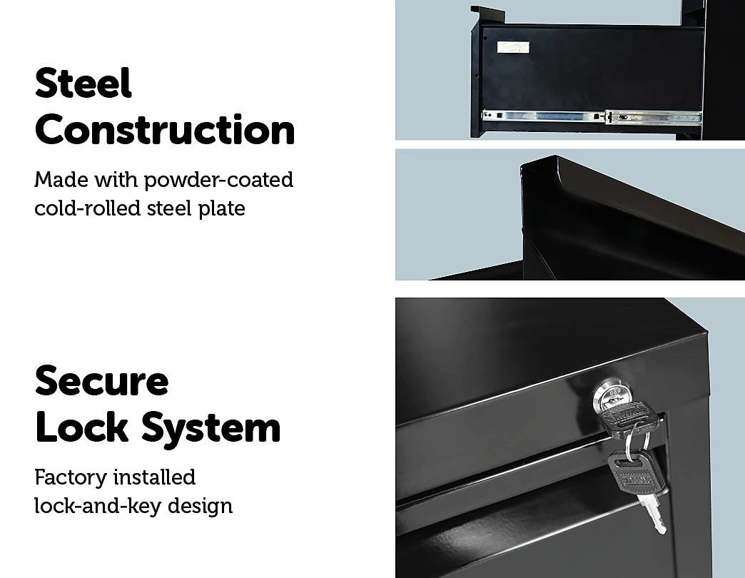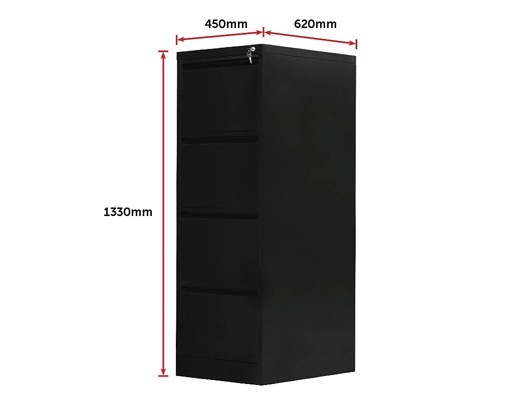 Each drawer can hold up to 40kg of files and still slide in and out effortlessly for smooth and easy access to your documents. The cabinet comes with a factory installed lock and a set of 2 keys that effectively locks all four drawers so your documents remain secure.