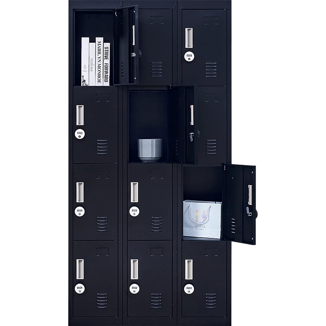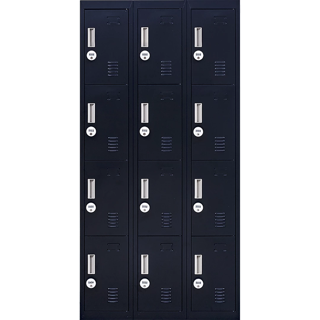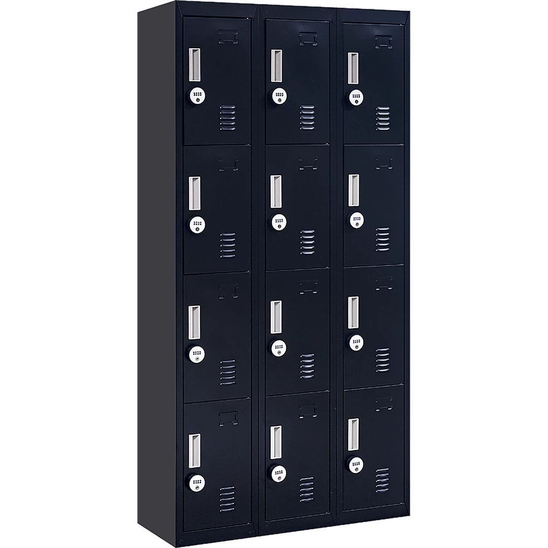 The unit has 12 individual locker compartments stacked in a 3 x 4 grid. Each locker provides ample space for personal items – and can hold up to 30 kg. Built-in ventilations slits keep the stored items from smelling musty. Users may also customise their locker with a name tag or label in the designated slot provided. This comes comes with 4-Digit Combination Lock to ensure safety of your belongings.