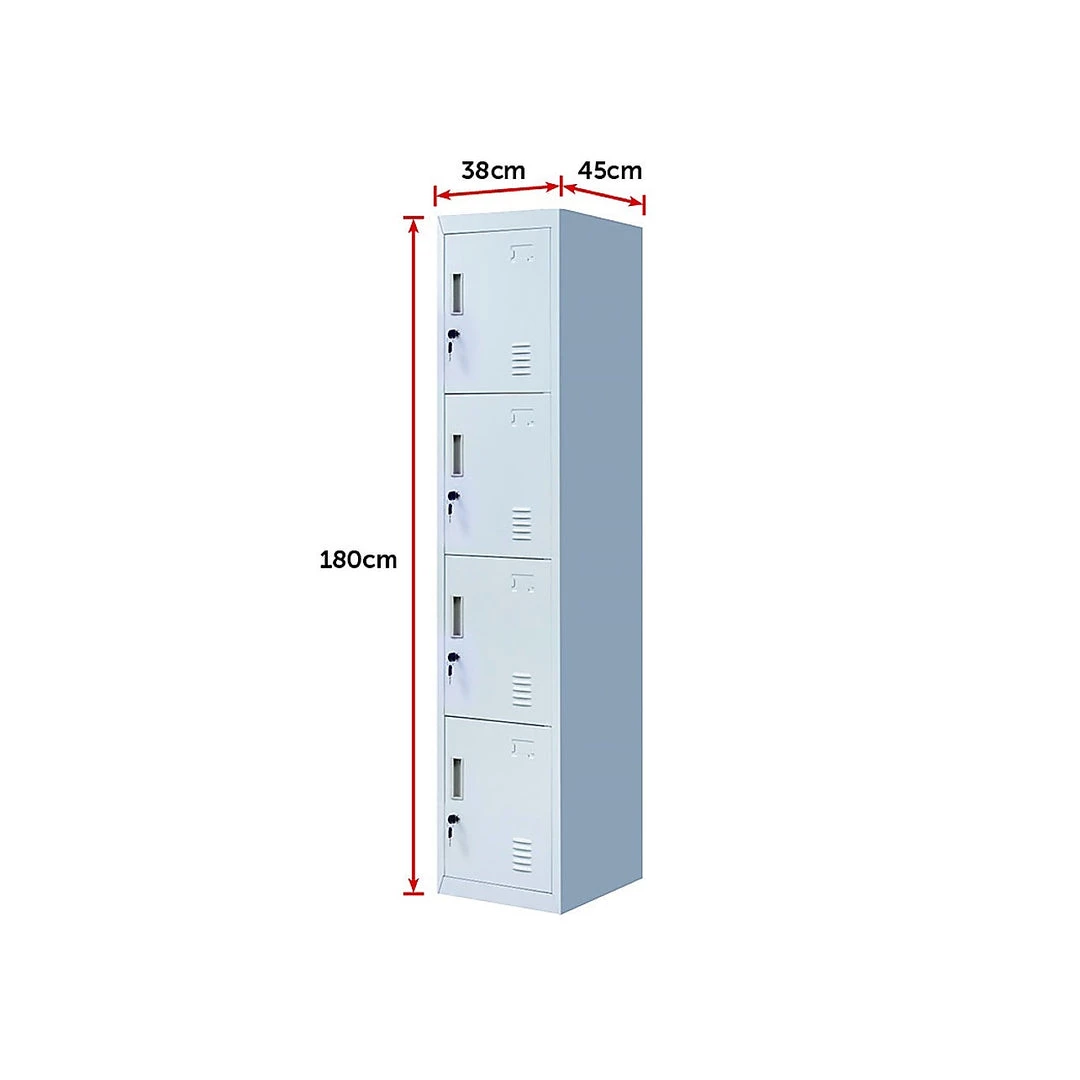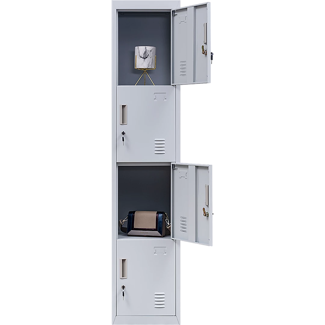Four vertically-stacked lockers provide a good amount of room for small personal belongings, purses, textbooks, office supplies, and much more. This comes comes with Standard Lock with 2 Keys to ensure safety of your items.