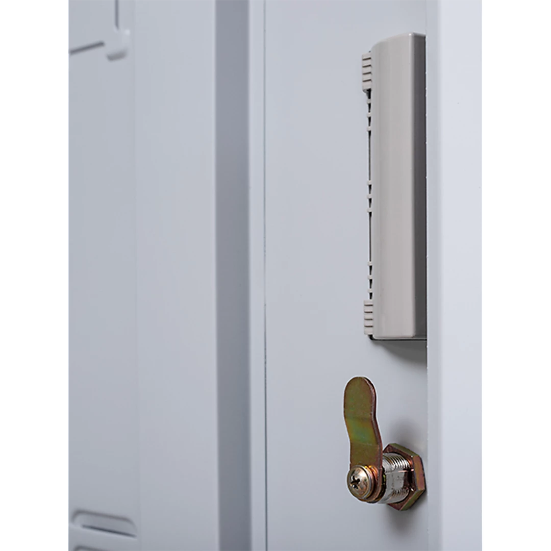 The locker is constructed with solid cold-rolled steel plate for excellent sturdiness and durability, not to mention an attractive look. The steel is also powder-coated to resist corrosion. The locker measures 180 x 38 x 45cm, and the maximum recommended weight capacity is approximately 30kg per locker. There are spaces designated for labels to help identify lockers, and air vents are built-in to assure sufficient ventilation.