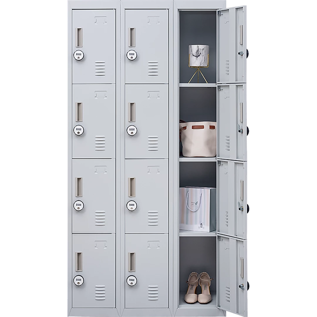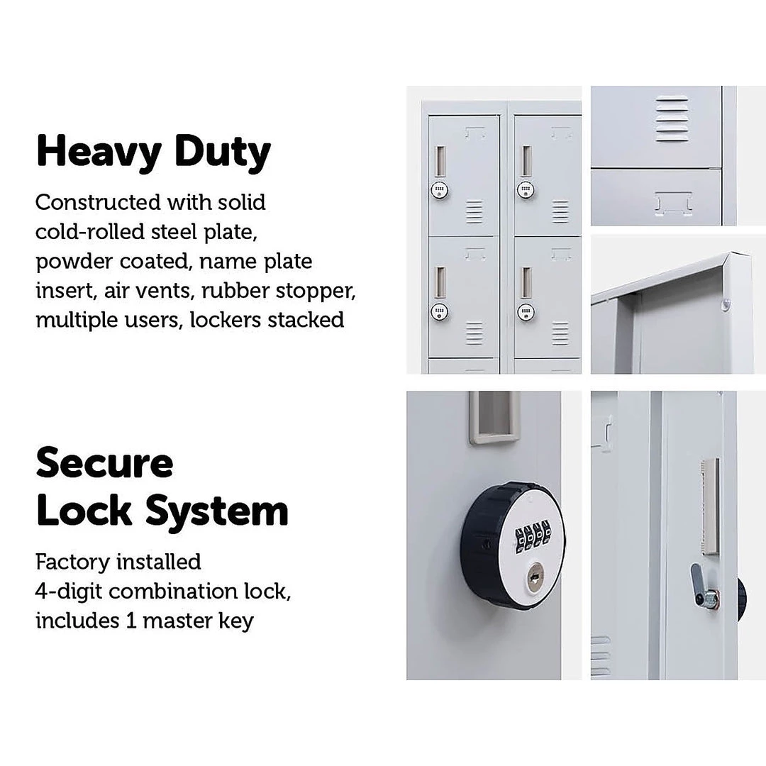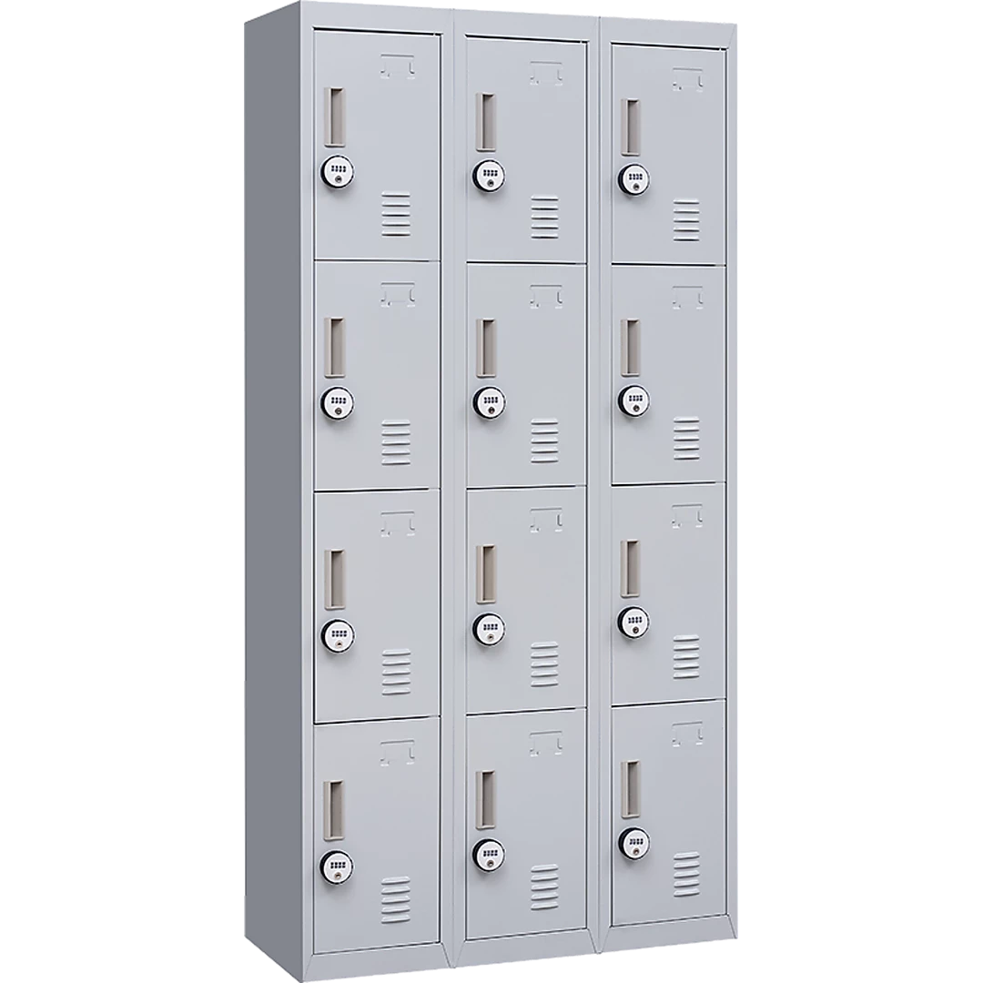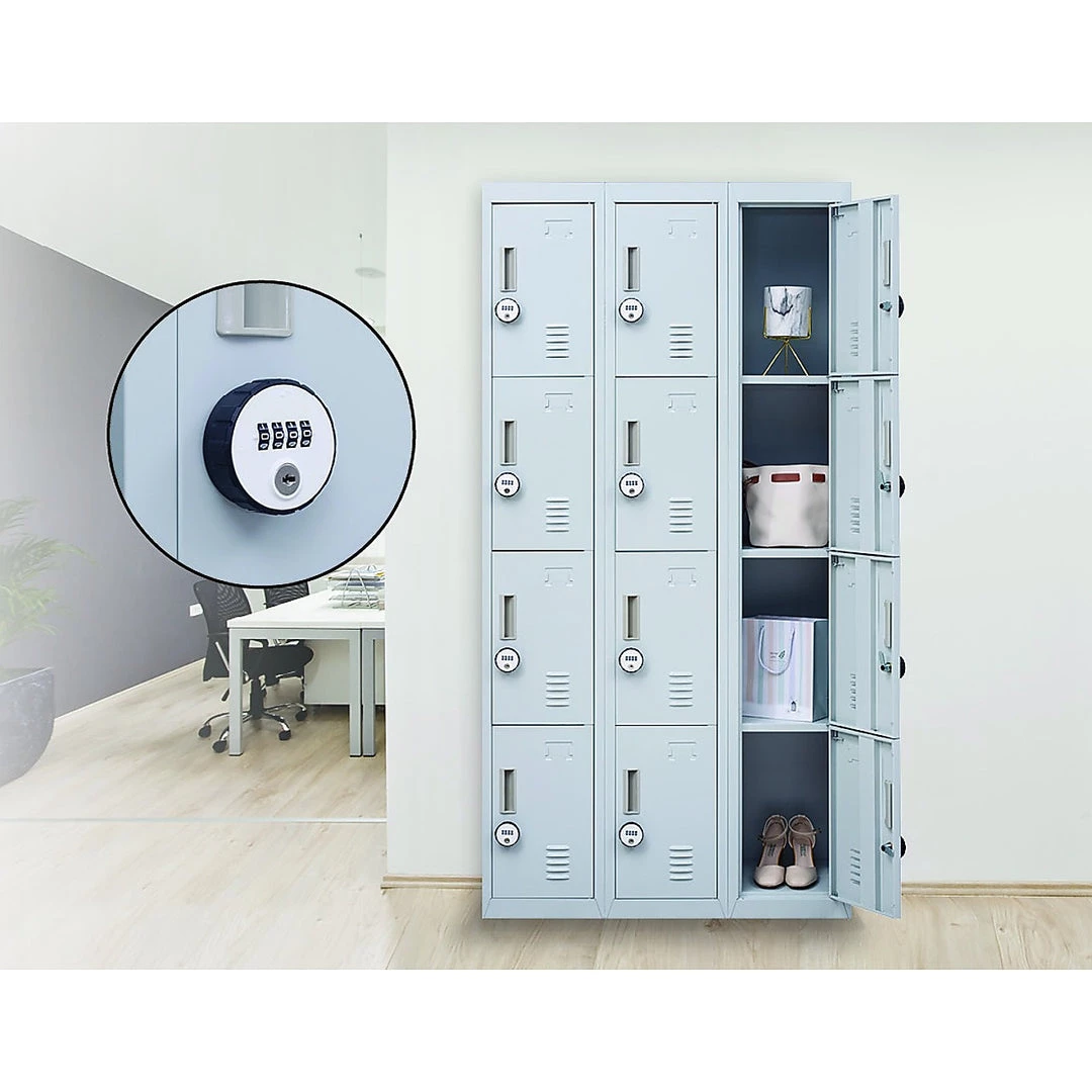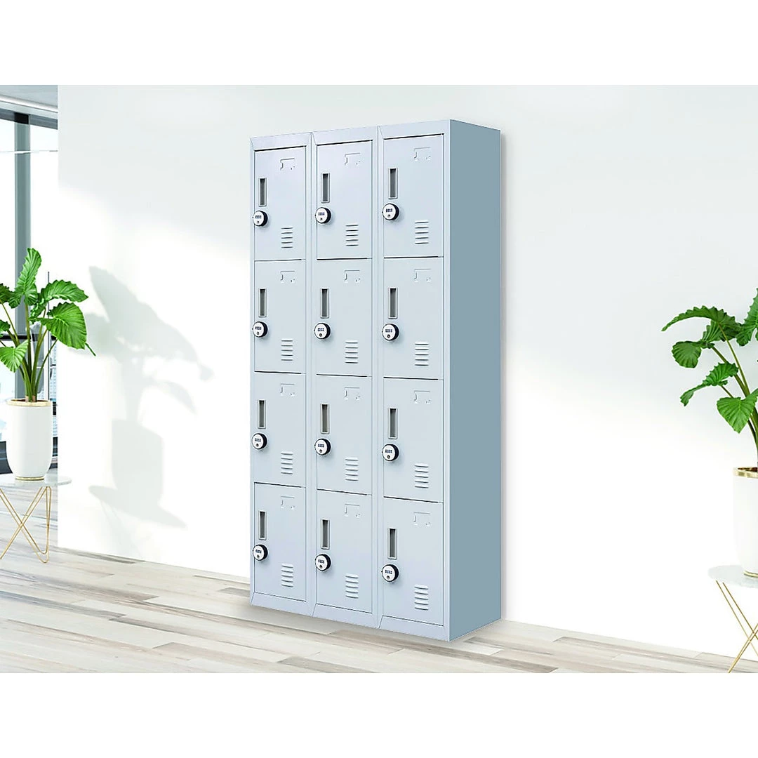 The unit has 12 individual locker compartments stacked in a 3 x 4 grid. Each locker provides ample space for personal items – and can hold up to 30 kg. Built-in ventilations slits keep the stored items from smelling musty. Users may also customise their locker with a name tag or label in the designated slot provided. This comes comes with 4-Digit Combination Lock to ensure safety of your belongings.