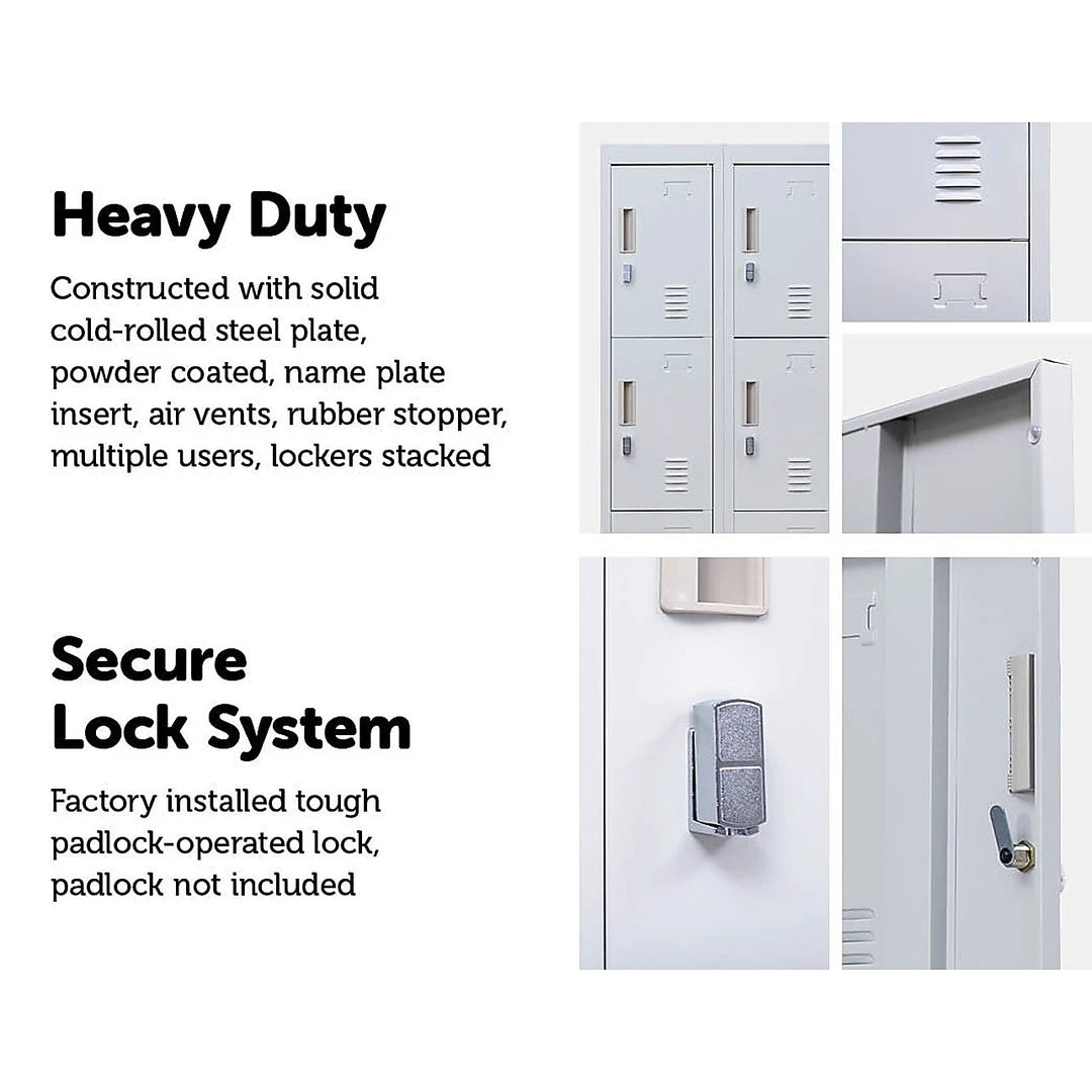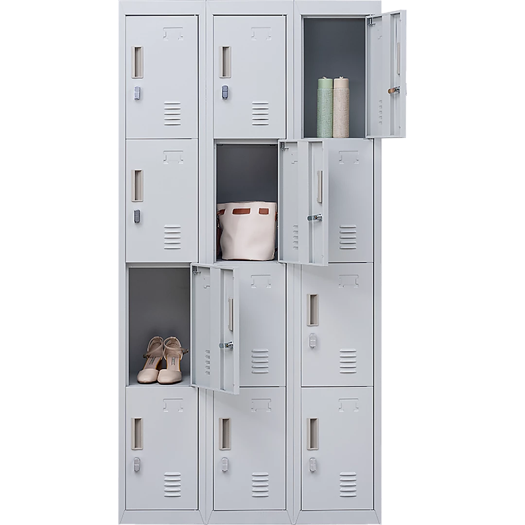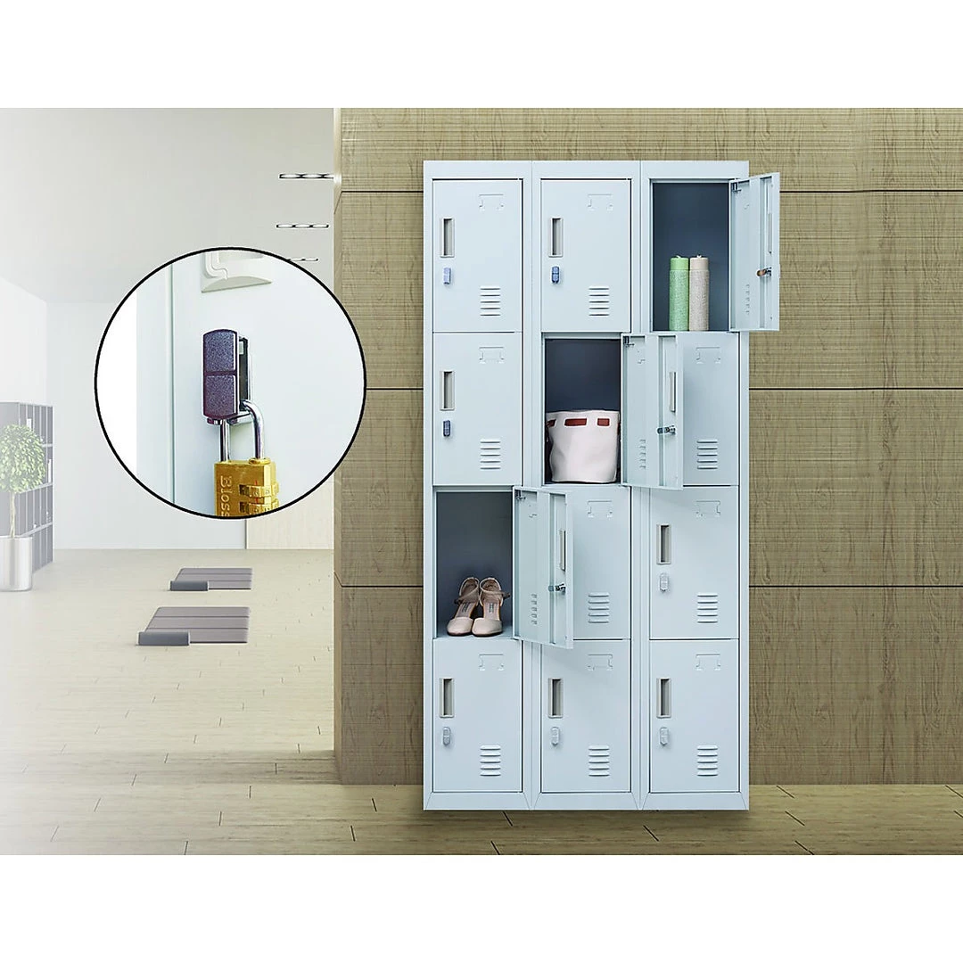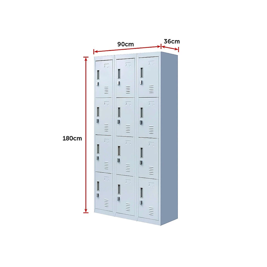 The unit has 12 individual locker compartments stacked in a 3 x 4 grid. Each locker provides ample space for personal items – and can hold up to 30 kg. Built-in ventilations slits keep the stored items from smelling musty. Users may also customise their locker with a name tag or label in the designated slot provided. This comes comes with Padlock-operated to ensure safety of your belongings.