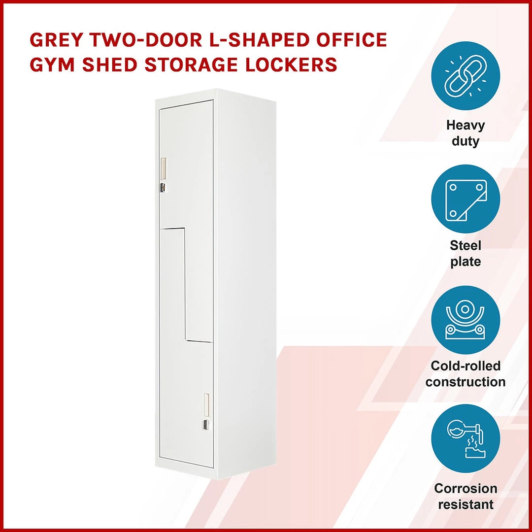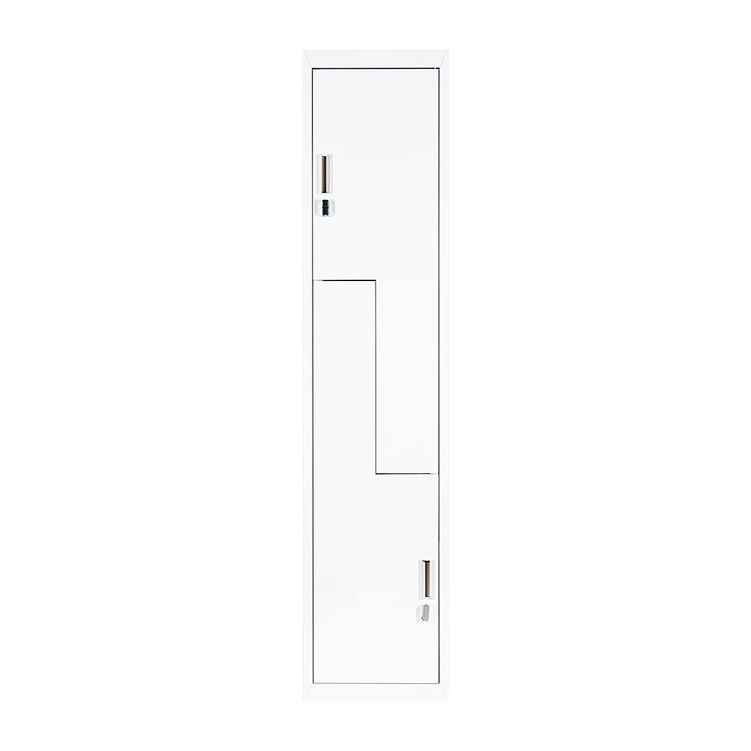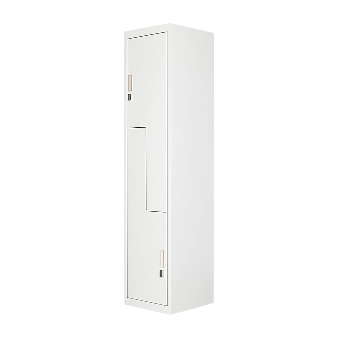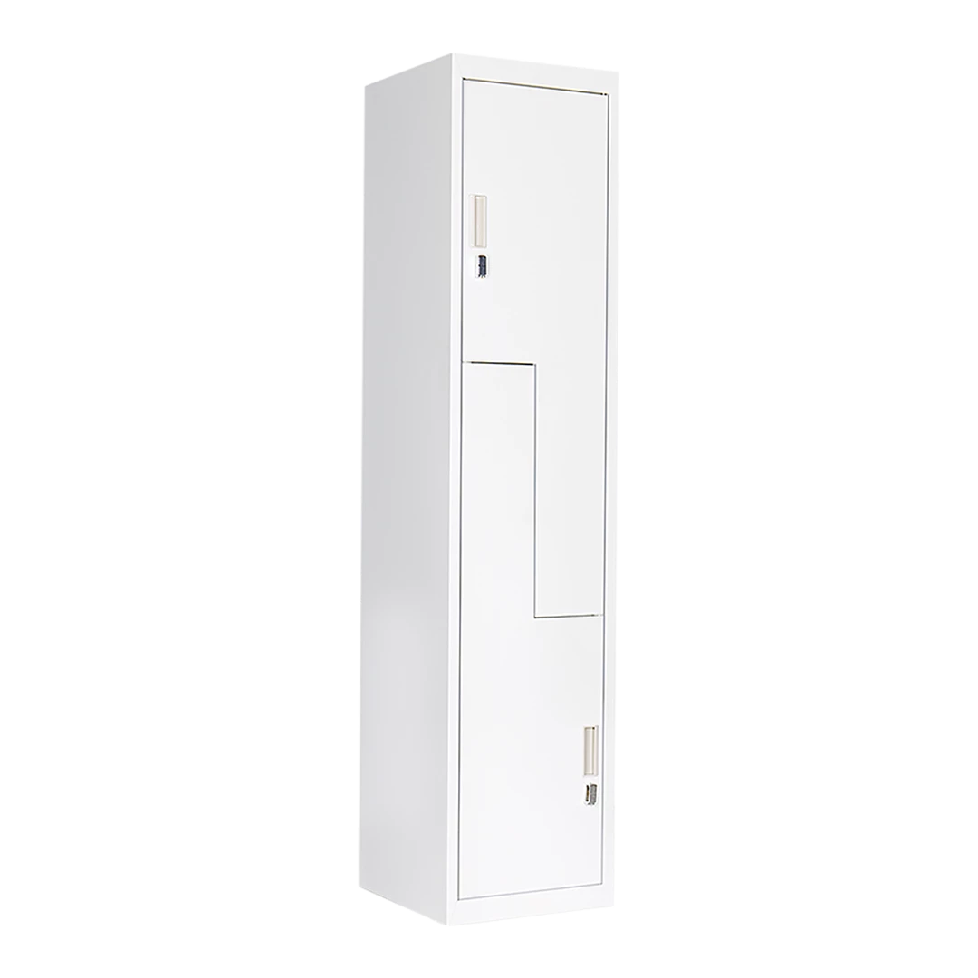 - 2 vertically stacked L-shaped locker compartments