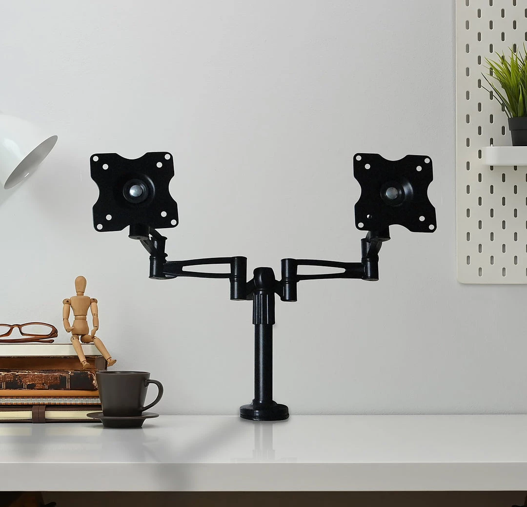 - Desk mount for 2 televisions/monitors from 10-25″ (25-64cm)
